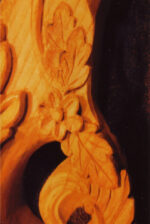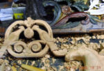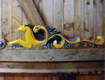 Alblasserwaards zeepaard. Zogenaamde kortwagen zit onder de buikplank halverwege het mooie maar tijdrovende werk. Tijd telt niet, alleen het resultaat geldt. Sierlijkheid en vloeiende lijnen is het allerbelangrijkst, en niet afwijken van de aloude motieven, die zijn van zichzelf al een rijk bron van inspiratie zijn. Augustus 2009.