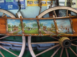 Wagenmaker W. Bos uit Hardinxveld-Giessendam Bouwjaar 1896. Heel bijzonder is de grote geringde zwaan op de voorzijde van het voorschamel. De zwaan is van oudsher een elitaire vogel geweest, gehouden door de rijke, zie halsband.
