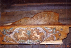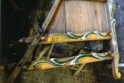 Boerenwagen vrouwenbankjes of bruidsbankjes uit de Alblasserwaard. Dit type hangt men over de bovenbalk van de zijleren. Veelal hadden de bankjes een smalle onderplank die in de steekleren in een rechthoekig gat werden gestoken.