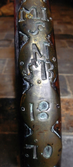 Zeldzame kromme dissel uit 1870 (huwelijk) Heel apart met ingehakte initialen in het gele koper: M.I. en M.d.B. afkomstig van familie Den Boer, Kerkstraat te Alblasserdam.