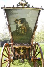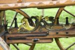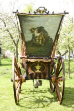 Deze wagen heeft ijzeren assen. De 6 vlam of schamelbanden houden de as op zijn plek. Het achterschamel heet een Lodewijk de 16e vaas, verguld en polychroom schilderwerk op het lofwerk. Dit aparte achterkrat is een kopie maar hoort wel in de streek, gezien het snijwerk. Het achterkrat is bijzonder van vorm. De zijstijlen zijn slingerend en is beschilderd en gerestaureerd door de eigenaar Jan van Asperen. Rembrandt van Rijn heeft het orgineel geschilderd en die heeft het op zijn beurt weer gepikt van zijn leermeester.